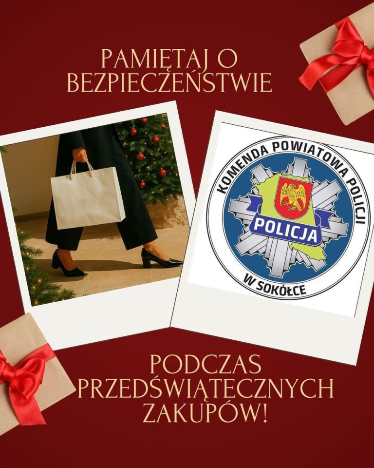 Przedświąteczne zakupy zwiększają ryzyko kradzieży i oszustw. KPP Sokółka przypomina o zasadach bezpieczeństwa w sklepach i w sieci, podpowiada jak chronić pieniądze, dokumenty i dzieci oraz jak unikać oszustw internetowych.