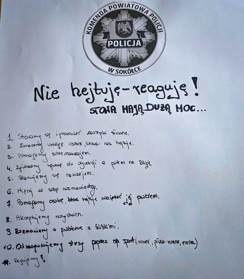 Sokólskie policjantki i uczniowie mówią stop hejtowi