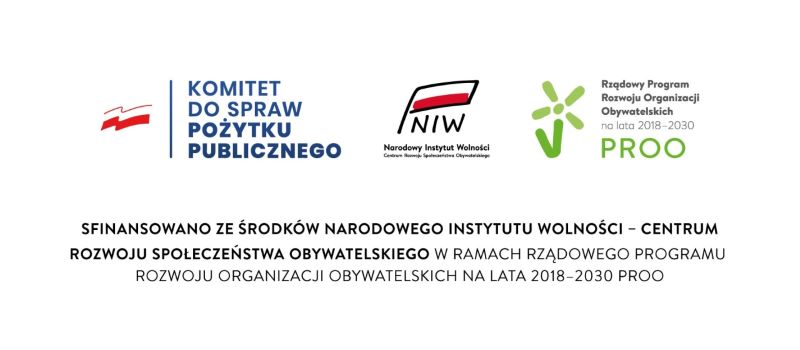 Sfinansowano ze środków Narodowego Instytutu Wolności – Centrum Rozwoju Społeczeństwa Obywatelskiego w ramach Rządowego programu Rozwoju Organizacji Obywatelskich na lata 2018-2030 PROO.