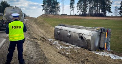 • Nietrzeźwy kierowca cysterny z mlekiem wpadł przez uszkodzone koło